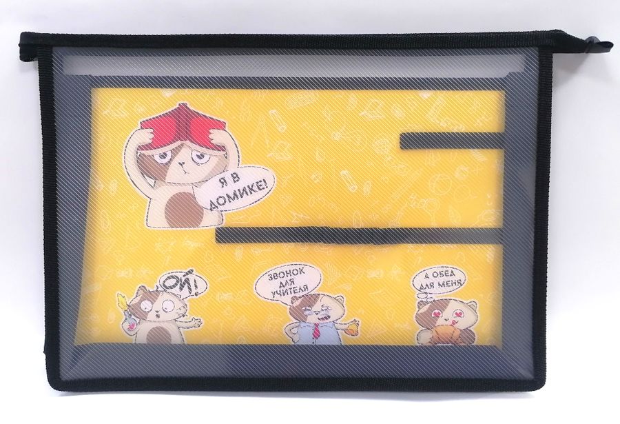 Папка для труда пластик молния сверху А4 2отд. Котоучение ПЧЕЛКА ПТР-2 (уни)
