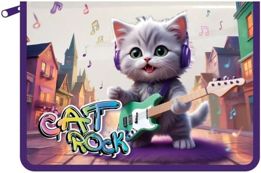 Папка для труда пластик молния вокруг А4 1отд. Кошачий рок Lamark NF0030-10 (уни)