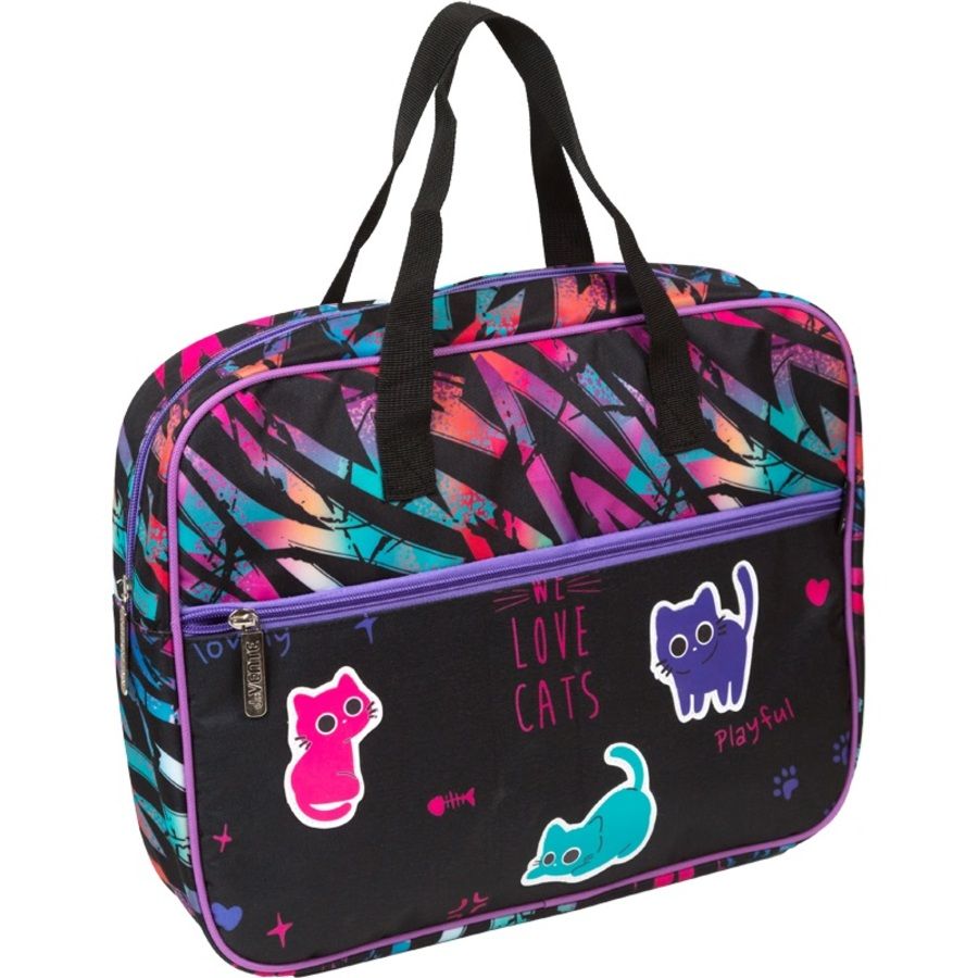 Папка для тетрадей, ИЗО и технологии "deVENTE. Funny Cats" A4 (36x28x8 см) плотный износостойкий полиэстер с водоотталкивающей пропиткой, , с текстильным расширением 8 см, внешний карман на молнии, на молнии сверху, аппликация из каучука, с внутренним карманом, с подкладом, с текстильными ручками увеличенной длины 28 см, окно и именная карточка для подписи