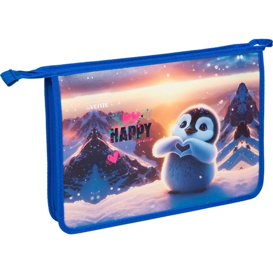 Папка для тетрадей "deVENTE. Happy Pinguin" A4 (337x243x50 мм) с текстильным расширением 5 см, на молнии сверху, картон с конгревным тиснением