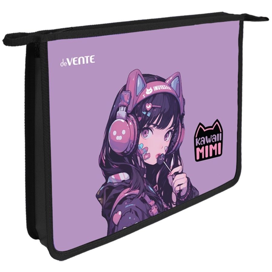 Папка для тетрадей "deVENTE. Kawaii Mimi" A4 (337x243x50 мм) с текстильным расширением 5 см, на молнии сверху, картон с покрытием из фольги с конгревным тиснением