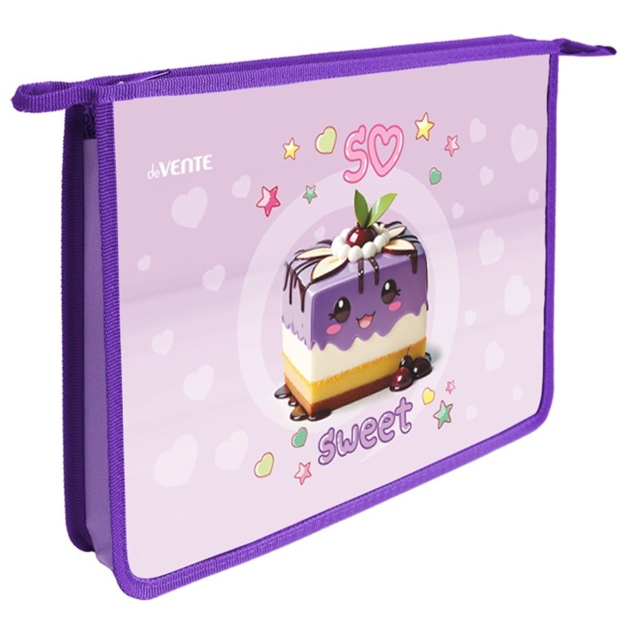Папка для тетрадей "deVENTE. So Sweet" A4 (337x243x50 мм) с текстильным расширением 5 см, на молнии сверху, картон с покрытием из фольги с конгревным тиснением