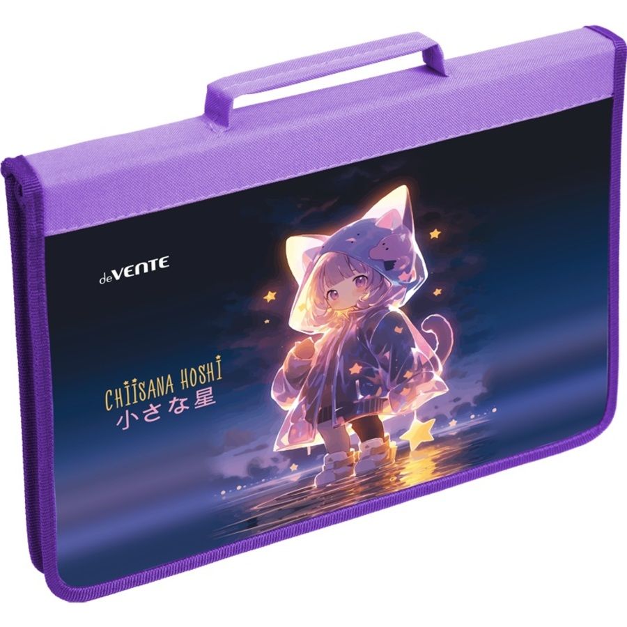 Папка для тетрадей, ИЗО и технологии "deVENTE. Chiisana Hoshi" A4 (337x230x30 мм) с ручкой, на молнии с трех сторон, картон с покрытием из фольги с конгревным тиснением