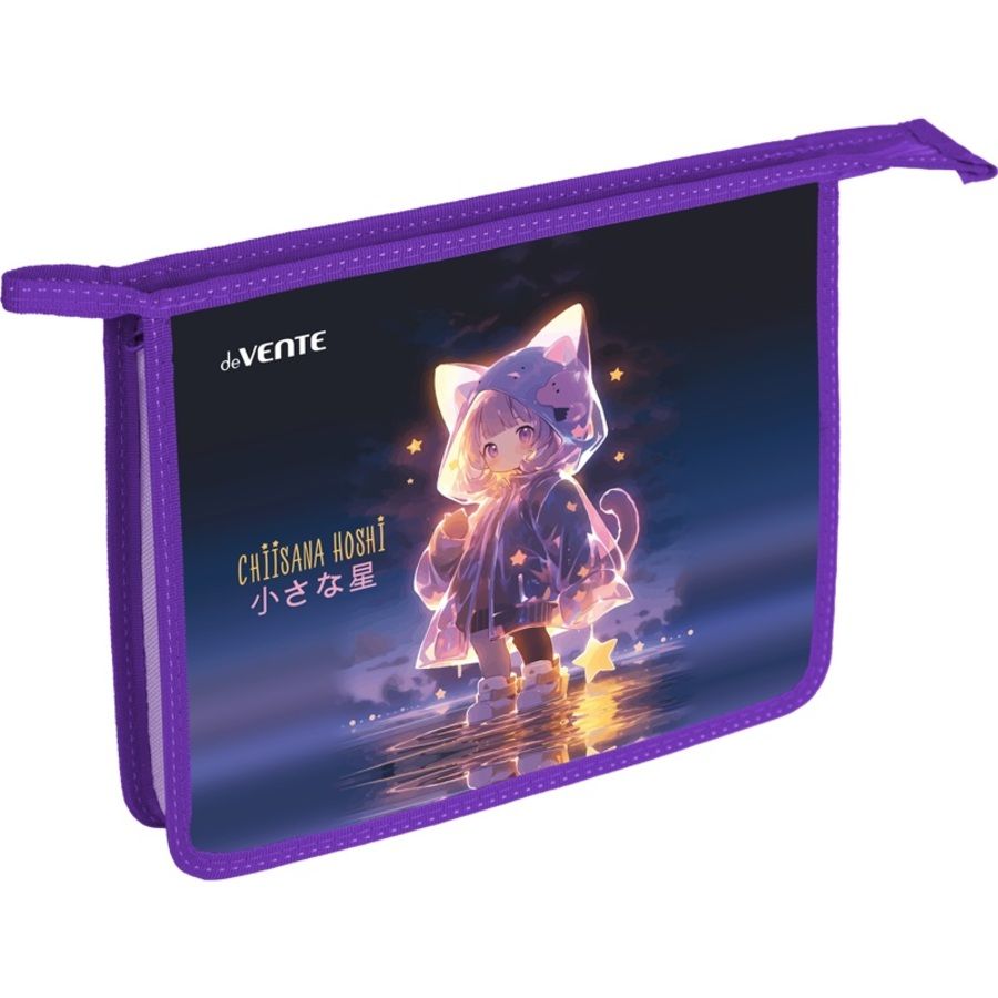 Папка для тетрадей "deVENTE. Chiisana Hoshi" A5 (240x198x45 мм) с текстильным расширением 4,5 см, на молнии сверху, картон с покрытием из фольги с конгревным тиснением