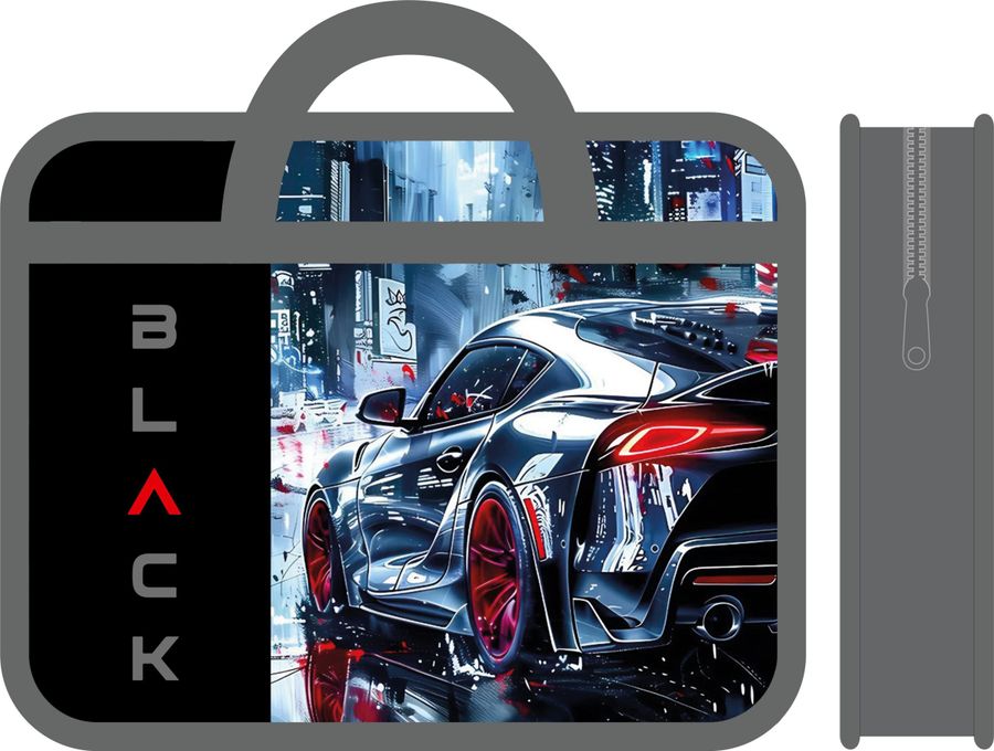 Папка для тетрадей пластик молния сверху А4 1отд. Black car ручки ПЧЕЛКА ПМ-А4-25 (муж)