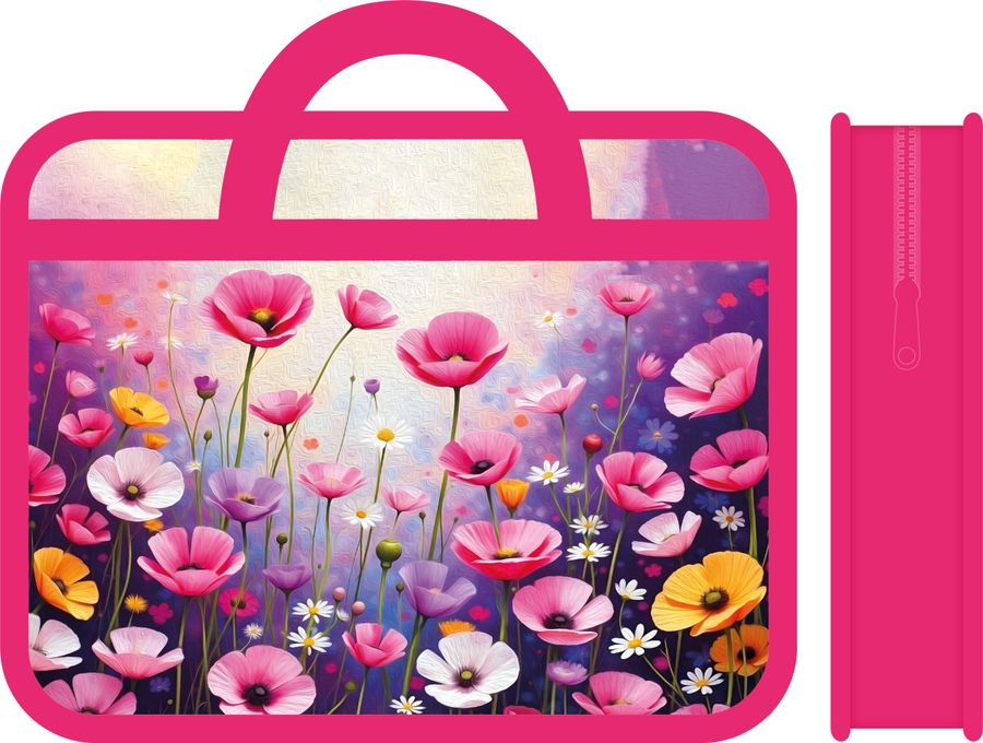 Папка для тетрадей пластик молния сверху А4 1отд. Цветы ручки ПЧЕЛКА ПМ-А4-25 (жен)