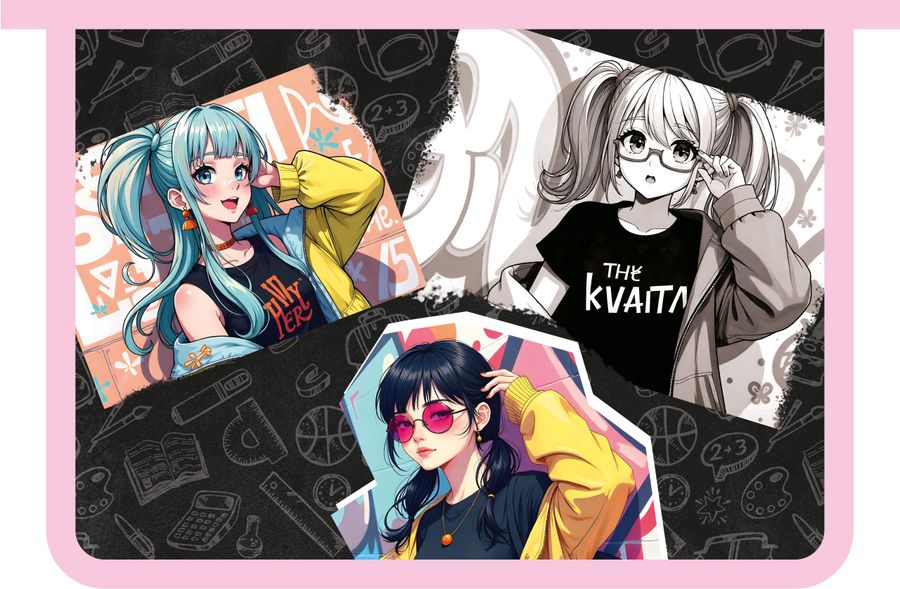 Папка для тетрадей А4 пластиковая, молния сверху с дизайном 325/230/55 (50) (ПМ-А4-29, ДЕВОЧКИ АНИМЕ 2026)
