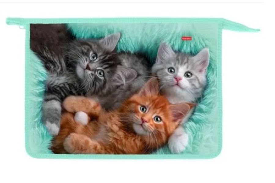 Папка для тетрадей Пластиковая А4ф 2 отделения 240х340х75мм на молнии -Котики бывают разными- в инд
