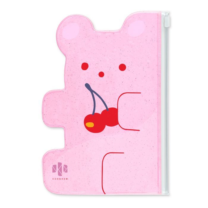 Папка для документов пластиковая арт. 52573/ 12 РОЗОВЫЙ МИШКА ( 21x14.5 см, глиттерный ПВХ, 1 отделение (-я), гибкая молния, фигурная вырубка, шелкография в три краски)