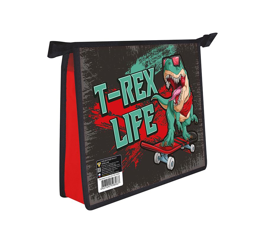Папка для тетрадей А5 пластиковая, молния сверху с дизайном, 230/190/50 (50) (ПМ-А5-29, T-REX 2023), ПМ-А5-29