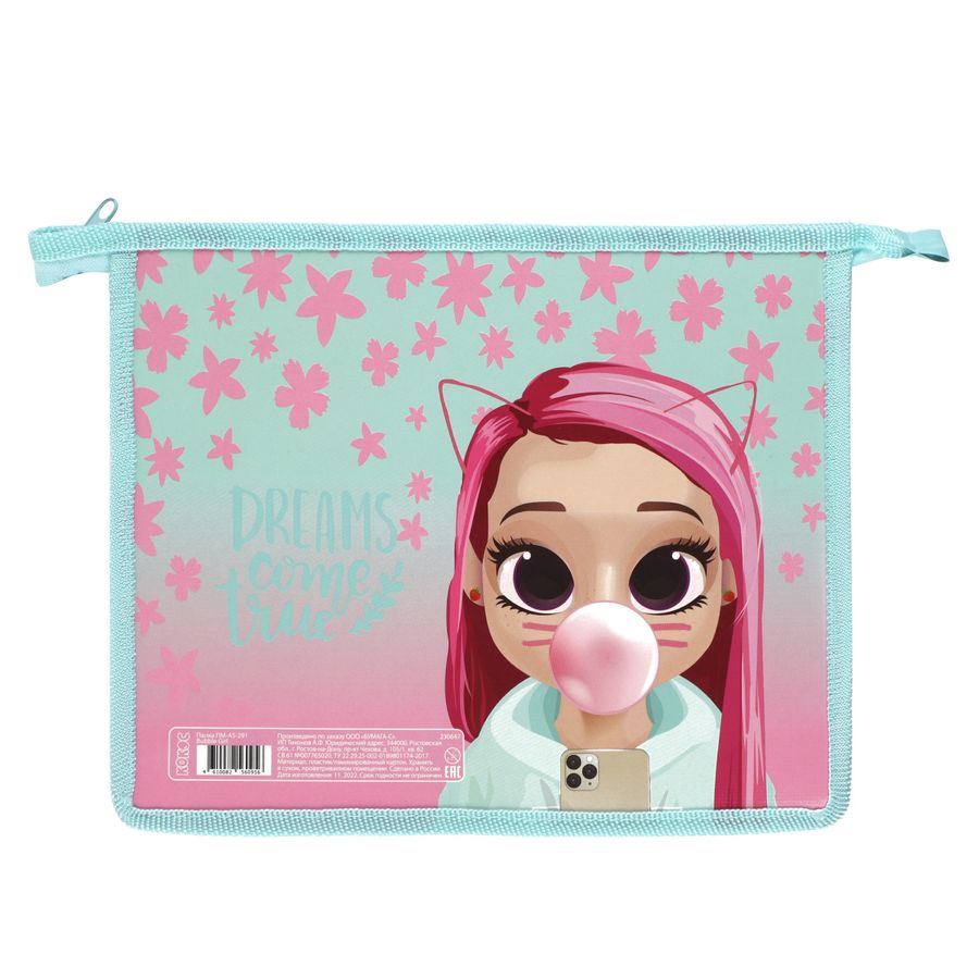 Папка для тетрадей А5 пластик/картон молния сверху 1 отделение Bubble Girl КОКОС ПМ-А5-291/230647
