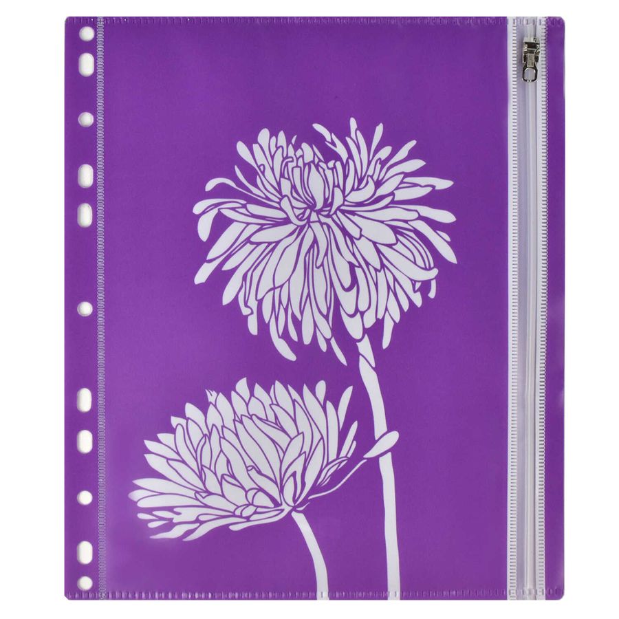 Папка д/документов арт.46707/12 ЦВЕТЫ (А5, 25.5х21, одно отделение, пластик, перфорация, гибкая молния, УФ печать)