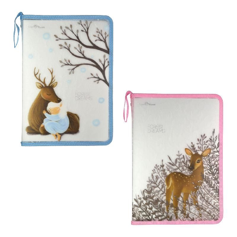 Папка на молнии BrunoVisconti® А4 (23 х 33,5 х 2,5 см) "FOREST DREAM" Арт. 14-032/04 в ассортименте Папка формата А4 из коллекции "Forest Dream". Изготовлена из полимерного материала: гибкая и прочная. По периметру - контрастная текстильная окантовка. Есть ручка-петля, чтобы удобно переносить папку или подвесить для хранения. Подойдет для использования в школе и для внеклассных занятий. В нее удобно сложить альбомы, бумаги, мягкие учебные пособия. Папка застегивается на молнию, поэтому мелкие предметы не выпадут при переноске. Украшена нежными весенними иллюстрациями: девочка, обнимающая оленя и олениха в цветущей траве. Выполнена в двух цветовых вариантах: розовом и голубом.