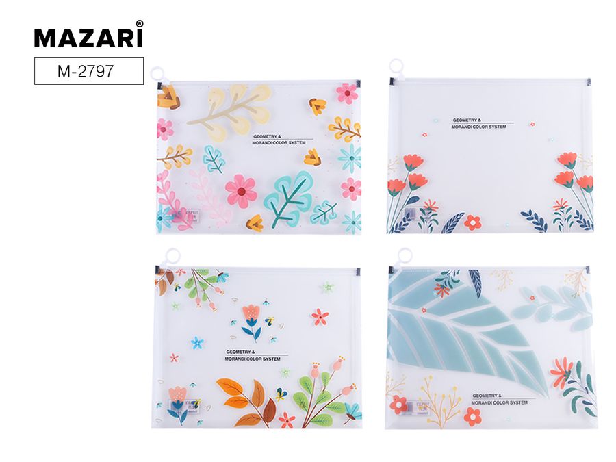 Папка на молнии ZIP пластик А4 1отд. пл.170мкм Floral ассорти MAZARI M-2797