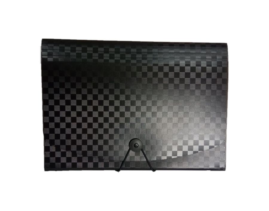 Папка на кнопке с 13-ю отделениями "deVENTE. TOTAL BLACK" A4 (330x235x30 мм) 700 мкм, фактура "шахматная доска" внутренние карманы 170 мкм, в комплекте с бумажными цветными индексами, черная
