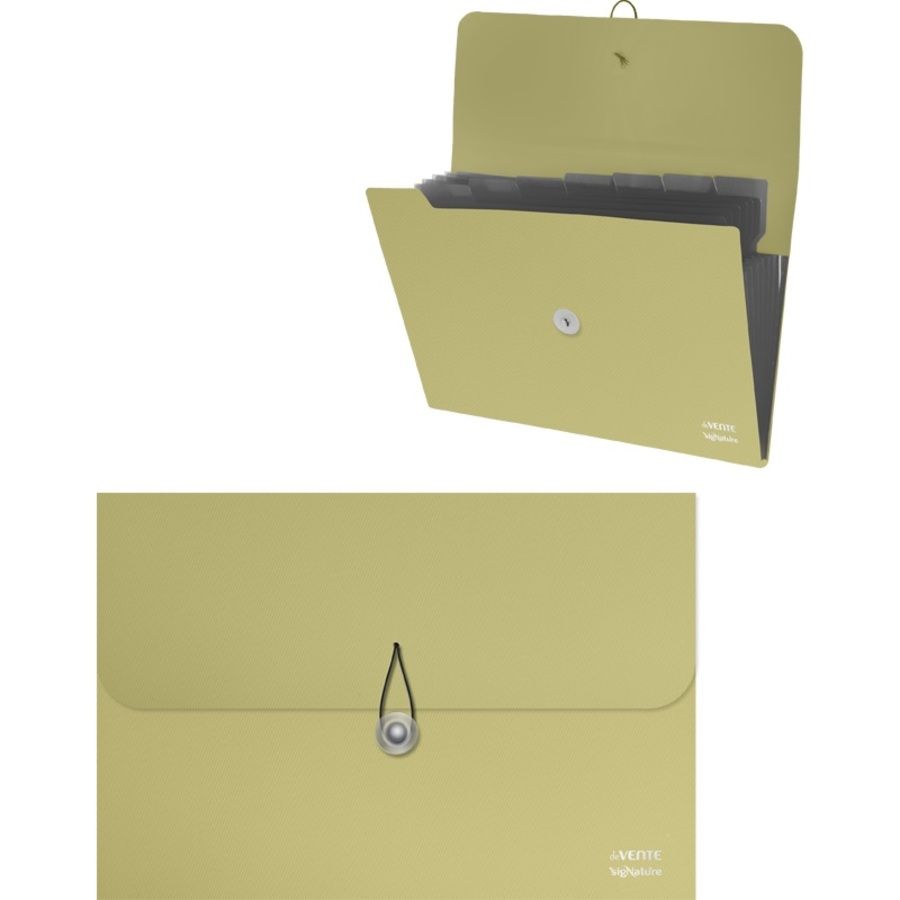 Папка с резинкой с 8-ю отделениями "deVENTE. sigNATURE" A4 полипропилен 600 мкм, фактура "ткань" черные разделители 160 мкм, индивидуальная упаковка, оливковая