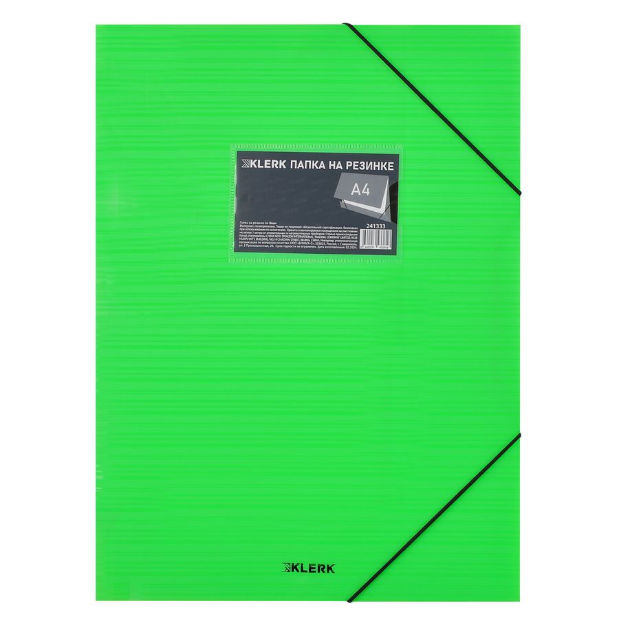 Папка на резинке пластик А4 1отд. торец 30мм пл.400мкм Neon зеленый KLERK 241333