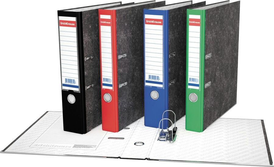 Регистратор 50мм мрамор красный с внешним флаерсом Erich Krause 33007