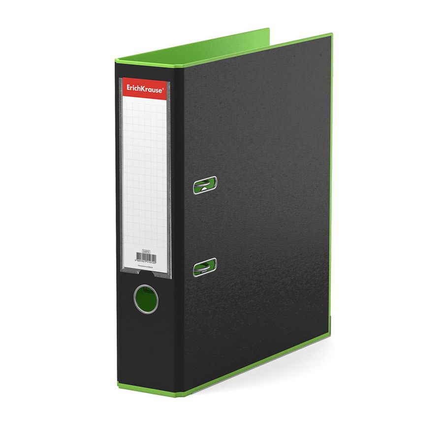 Папка - регистратор формата А4 снабжена стальным арочным механизмом с никелевым покрытием. Изготовлена из плотного картона, покрытого с двух сторон бумагой со структурным тиснением и водоотталкивающей поверхностью. Корешок папки шириной 70 мм оснащен прозрачным пластиковым карманом со сменной этикеткой для маркировки. Для удобства использования на корешке имеется металлическое кольцо для захвата. Нижние края обложки защищены металлическим кантом. Металлические фиксаторы удерживают папку в закрытом виде даже при максимальном наполнении. Вместительность до 450 листов бумаги плотности 80 г/м?. На форзаце есть шаблон для оглавления. в ярких неоновых цветах. Элегантный дизайн построен на контрасте черной внешней стороны папки и яркой внутренней.