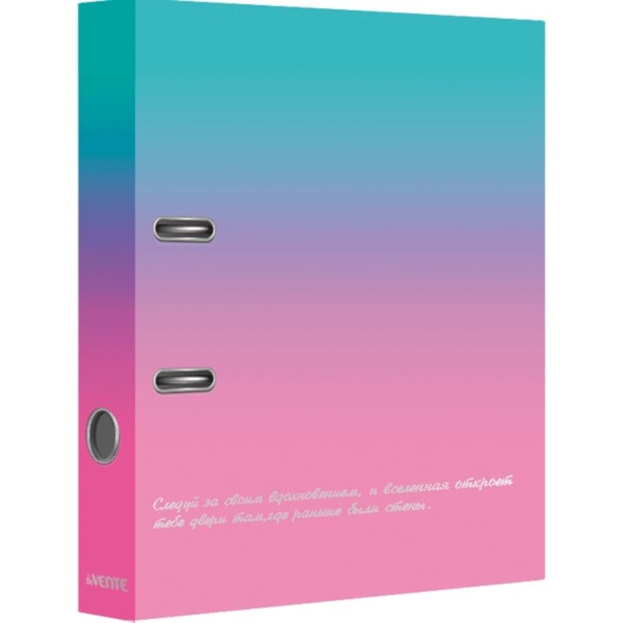 Папка с арочным механизмом "deVENTE. Degrade" A4 75 мм разобранная картонная, матовая ламинация, цветная запечатка, тиснение фольгой, металлическая окантовка, цветная запечатка форзаца, индивидуальная упаковка.
