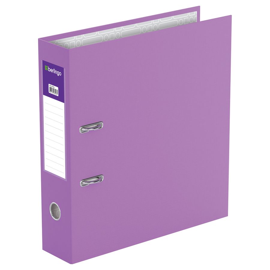 Папка–регистратор Berlingo серии Standard размером А4 (320*290*70 мм) с обложкой из жесткого износостойкого картона с односторонним покрытием из бумвинила. Вместимость папки – 550 листов, ширина корешка – 70 мм. Цвет – сиреневый. Конструкция разработана с учетом всех особенностей эксплуатации. Папка выгодно отличается надежным арочным механизмом из качественного металла, наличием кармана на корешке со сменным информационным ярлыком для маркировки, полем для записей на внутренней стороне обложки и отверстием для удобного снятия с полки. Папка предназначена для транспортировки, упорядочивания и хранения бумаг.• Вместимость, в листах: 550;• Формат: А4;• Цвет папки: сиреневый;• Ширина корешка: 70 мм.