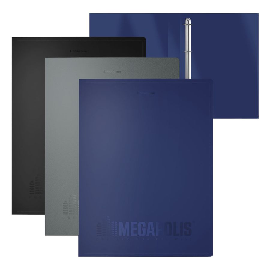 Пластиковая папка на кольцах формата А4 из высококачественного пластика с текстурой поверхности "песок", на которой не видно отпечатков пальцев и мелких царапин. Предназначена для хранения и просмотра документов. Количество колец-4, диаметр колец-25 мм, ширина корешка-35 мм, цвет папки - ассорти: черный, синий, серый. Папка вмещает до 250 бумажных листов. Размер папки - 255Х310х35, толщина обложки - 0.6мм. Код и баркод на каждой единице товара.