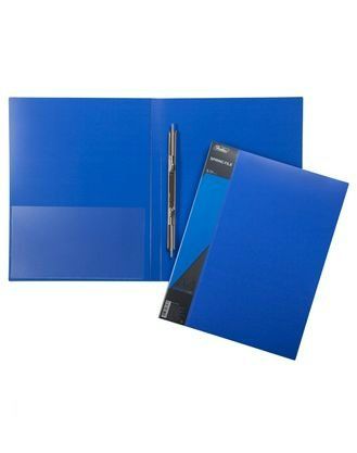 Папка Пластиковая Hatber А4ф с пружинным скоросшивателем с карманом корешок 17 мм STANDARD Синяя