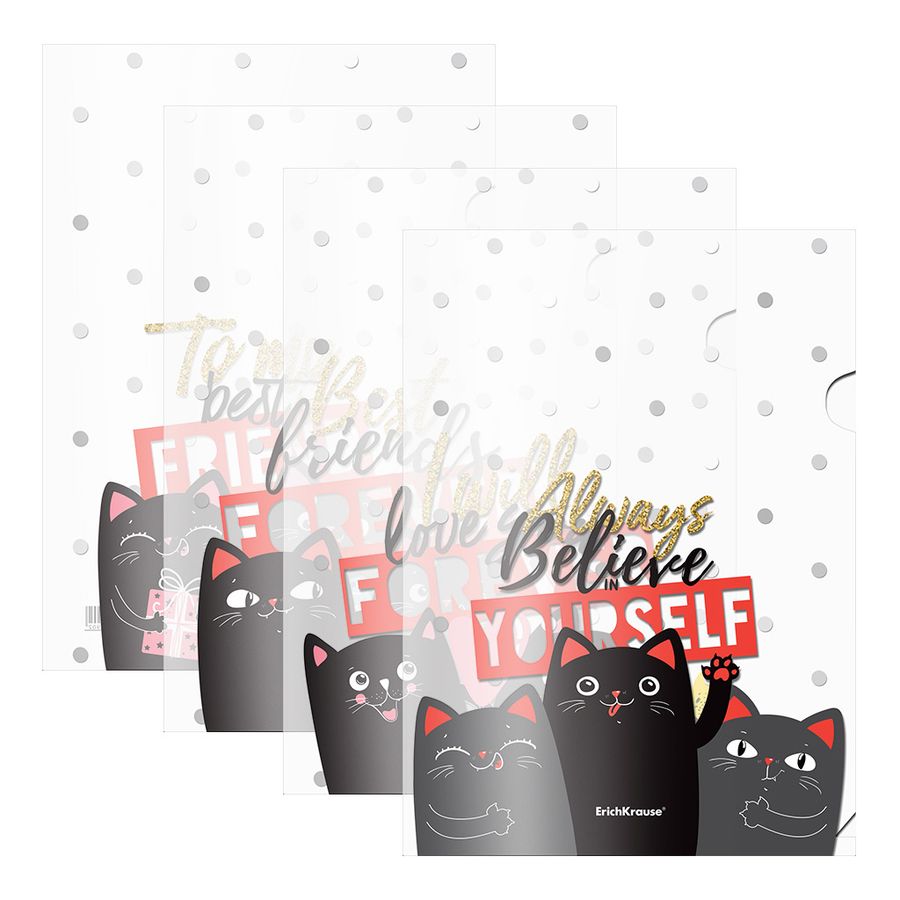 Набор из 4 папок-уголок формата А4 из высококачественного прозрачного пластика с текстурой поверхности "зеркало", на которой не видно отпечатков пальцев и мелких царапин. Предназначена для хранения и транспортировки небольшого количества документов. В наборе представлены 4 дизайна коллекции. Папка вмещает до 20 бумажных листов. Размер - 220х310мм, толщина - 0.16мм.