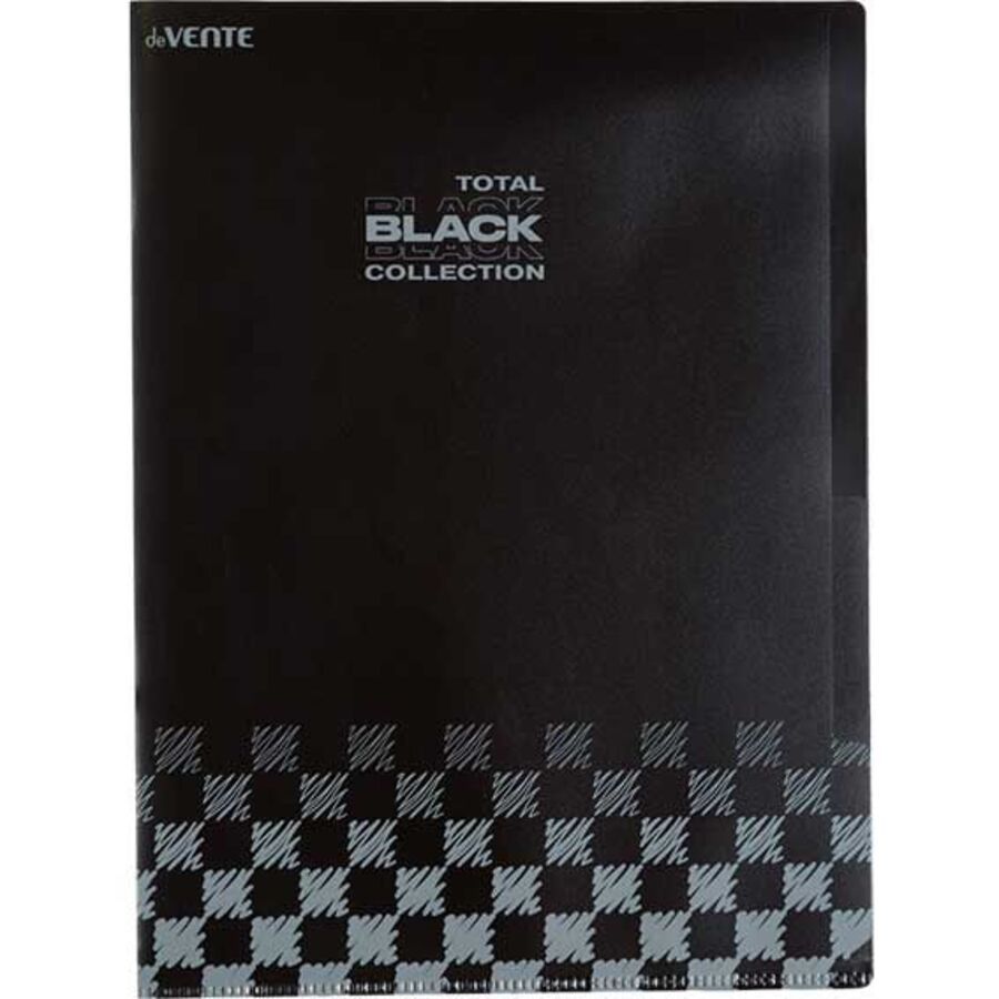 Папка-уголок c 3-мя отделениями "deVENTE. TOTAL BLACK" A4 (230x310 мм) 180 мкм, непрозрачная черная с дизайном, индивидуальная маркировка