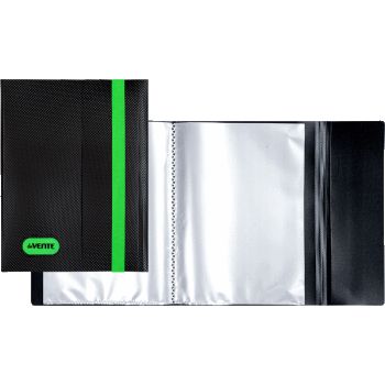 Папка с 020 вкладышами A5 "deVENTE. MonoChrome" A5 (156x225x20 мм) 500 мкм, с рельефной фактурной поверхностью, вкладыши 30 мкм, вертикальная неоновая зеленая резинка 15 мм, индивидуальная маркировка, непрозрачная черная с неновым зеленым