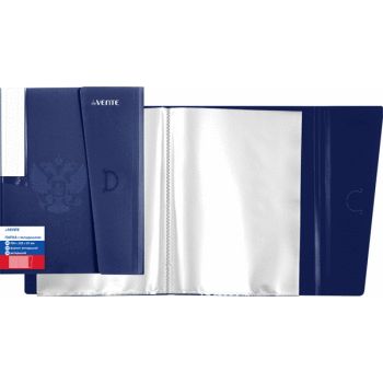 Папка с 020 вкладышами A5 "deVENTE. Герб" A5 (156x225x20 мм) 500 мкм, фактура "песок" с клапаном, выборочный лак, вкладыши 30 мкм, индивидуальная маркировка, темно-синяя