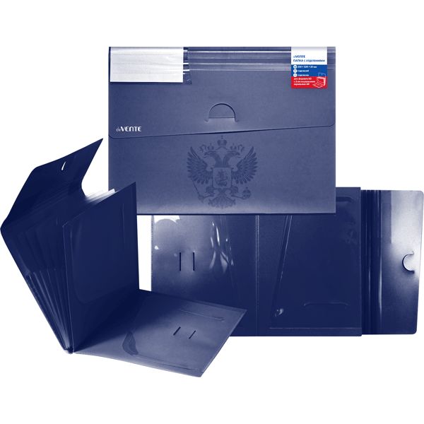 Папка с 020 вкладышами A4 "deVENTE. Герб" A4 (215x310x20 мм) 500 мкм, фактура "песок" с клапаном, выборочный лак, вкладыши 30 мкм, индивидуальная маркировка, темно-синяя.