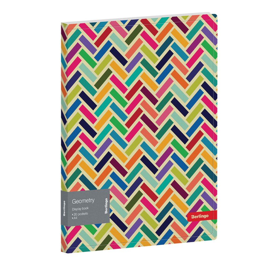Папка Berlingo серии Geometry с 20 вкладышами формата А4 - отличный и стильный помощник для хранения документов с ярким геометричным рисунком на обложке. Толщина обложки - 600 мкм. Тип скрепления – термосварка. Ширина корешка - 17 мм. Папка изготовлена из высококачественного полипропилена с матовой текстурой поверхности "песок", на которой не видно отпечатков пальцев и мелких царапин. Внутренняя сторона обложки имеет белый цвет и оснащена плотным прозрачным карманом для удобного хранения мелочей: ручки, заметок, визиток, дисков, флешек и др. Папка выполнена в размере 310*233*17 мм. Папка имеет 20 прозрачных листов-карманов увеличенной толщины 30 мкм, надёжно скреплённых сваркой. Вмещает до 100 бумажных листов. Индивидуальная упаковка в прозрачный пакет.• Количество вкладышей: 20;• Формат: А4;• Цвет: рисунок;• Ширина корешка: 17 мм