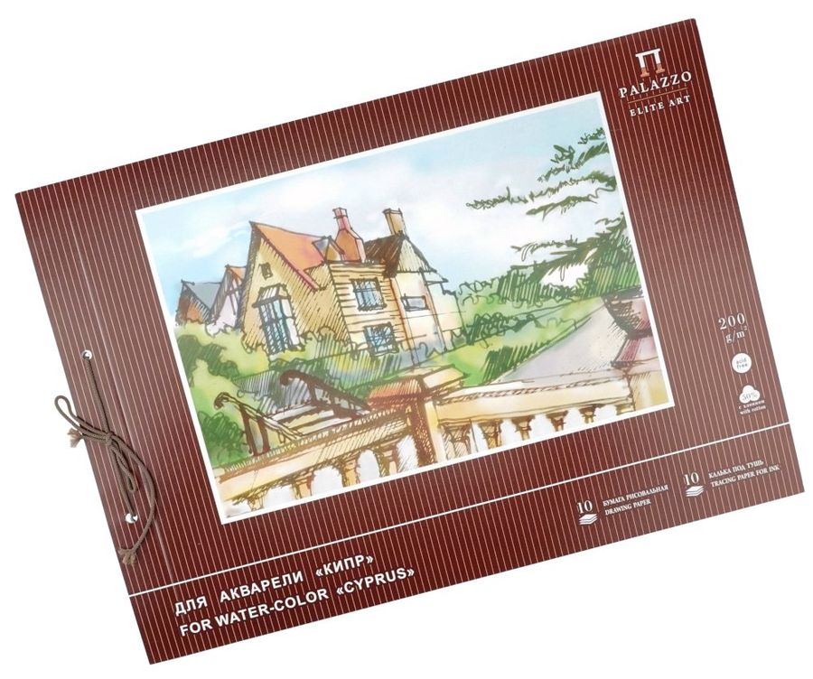 Альбом предназначен для работы акварелью. Внутренний блок изготовлен из бумаги, в составе которой содержится 50% хлопка (10 листов) и кальки, чередующейся с листами бумаги (10 листов). Наличие жесткой подложки позволяет делать наброски/писать "на весу". • Формат А3 (297х420 мм). • Жесткая подложка. • Внутренний блок - спец. бумага 200 г/м2 с содержанием хлопка 50%. • 20 листов (акварельная бумага - 10 л. + калька - 10 л.). • Скрепление - сутаж (завязки). Атрибуты товара