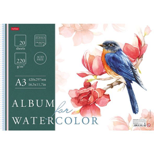 Альбом для акварели А3 формата, на пластиковой спирали.Внутренний блок-20 листов, 200 гр., отличается качеством и плотностью бумаги. Жесткая подложка позволит делать зарисовки на весу.Обложка изготовлена из высококачественного мелованного картона и дополнена спецэффектом в виде тиснения. Альбом для акварели ТМ Hatber российского производства отпечатан на современном высокотехнологичном оборудовании и соответствует стандартам качества. Подходит для рисования акварельными красками, акварельными карандашами, гуашью и фломастерами. Рисование в альбомах Hatber-это увлекательный и творческий досуг для всех.