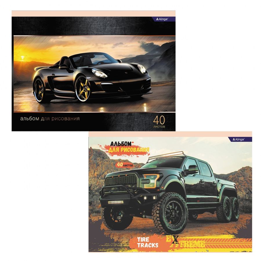 Альбом для рисования А4 40л., Alingar, на скрепке, мелованный картон (стандарт), 100 г/м2, "MIX. Black car"