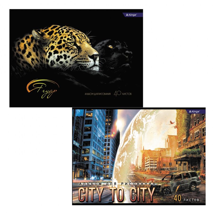Альбом для рисования А4 40л., Alingar, на скрепке, мелованный картон (стандарт), 100 г/м2, "MIX. Ягуар. City."