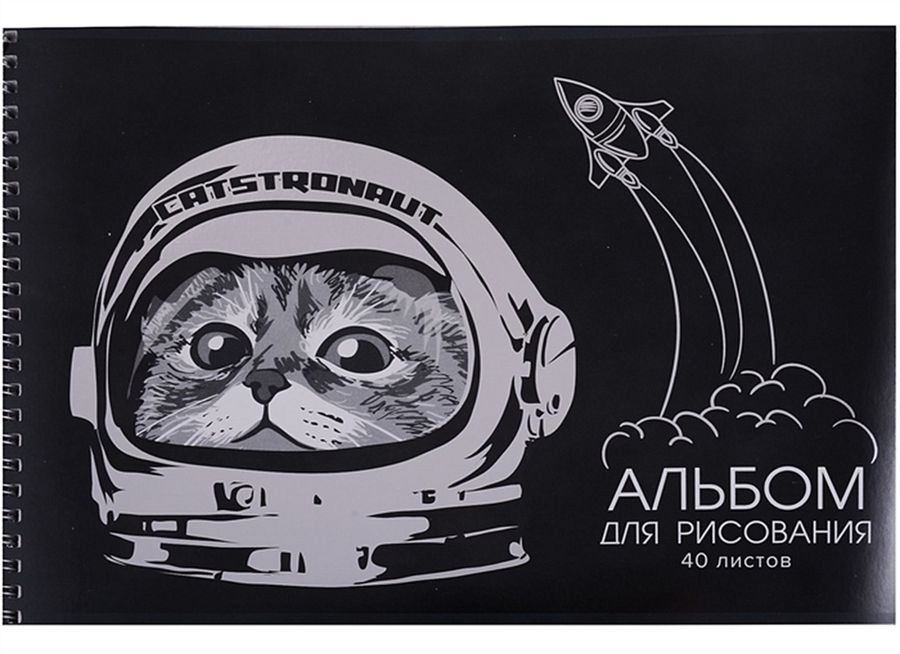 Альбом для рисования А4 40л гребень Космокот метал.пленка УФ-лак 100г/м2 Академия Холдинг 11054 (уни)