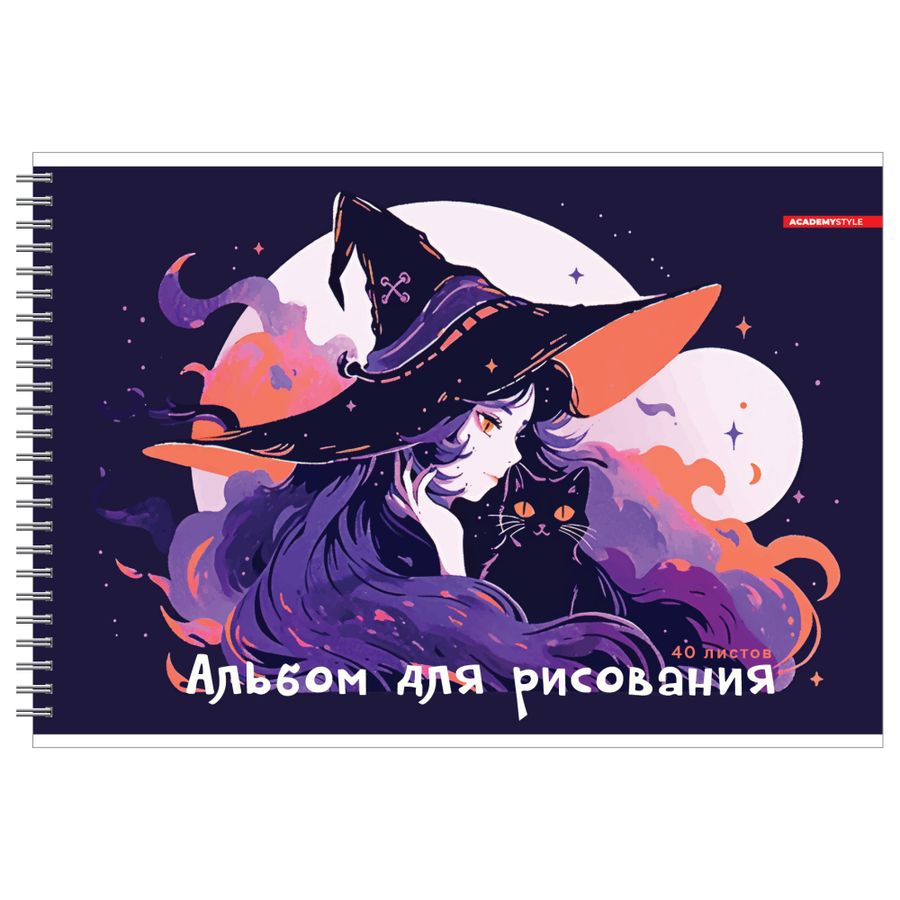 Альбом для рисования А4 40л гребень Ведьмочка с котом глиттер 100г/м2 ACADEMY STYLE 14479 (жен)