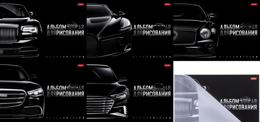 АЛЬБОМ для рисования 48л А4ф на скобе Пластиковая обложка тиснение серия -Black Edition-