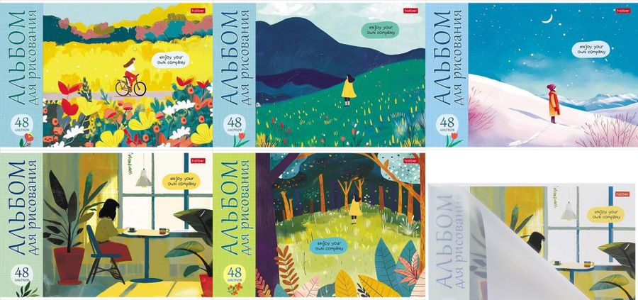 Альбом для рисования А4 48л скрепка пласт.обл. Наедине с собой ассорти 100г/м2 HATBER 48А4Впл (жен)