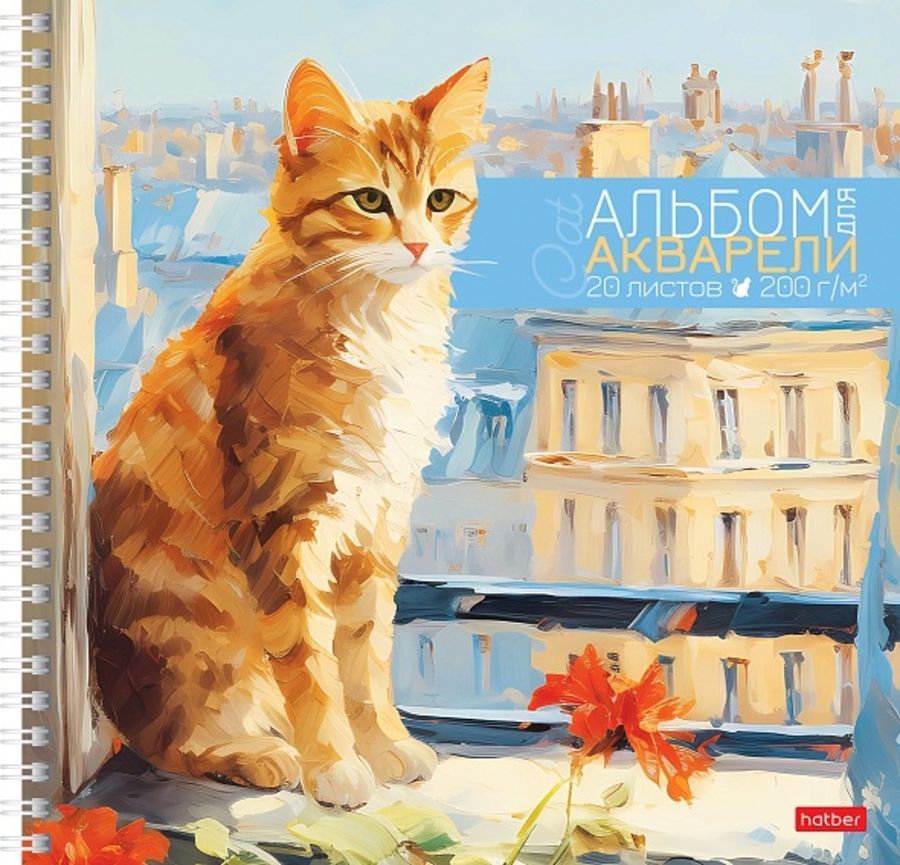 Альбом для рисования акварелью 205х205мм 20л гребень Кот-мечтатель 200г/м2 HATBER 20Аа5тВгр_31826