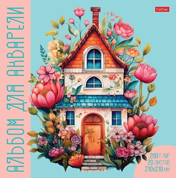 Альбом для рисования акварелью 210х210мм 20л склейка Пряничный домик 200г/м2 HATBER 20Аа4лтВк_31803