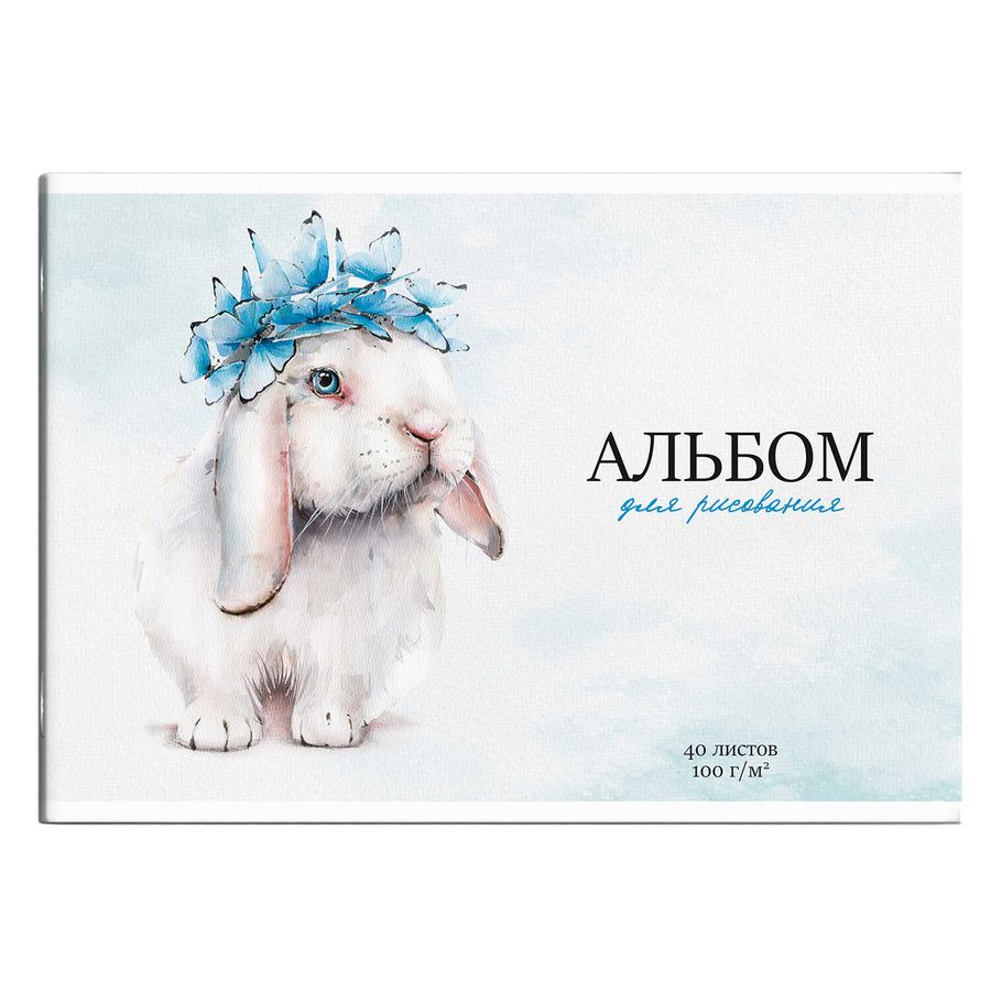 Альбом для рисования А4 40л скрепка Белый кролик УФ-лак 100г/м2 ФЕНИКС+ 66924 (жен)