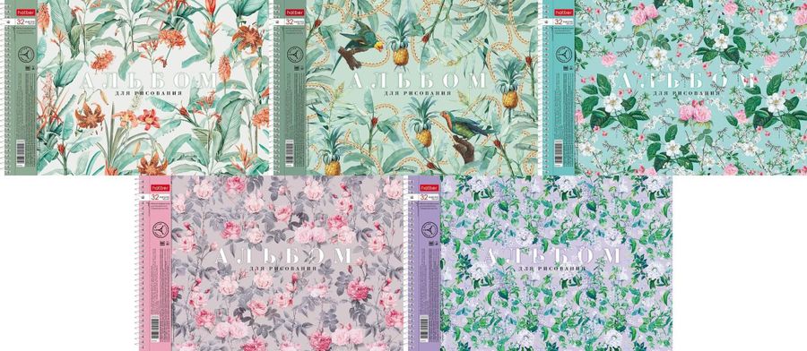 Альбом для рисования А4 32л спираль Floral collection перфорация ассорти 5диз 100г/м2 HATBER 32А4Всп (жен)