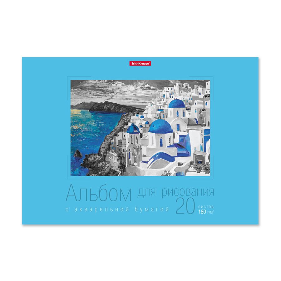 Альбом для рисования формата А4 (210х297 мм). Обложка из высококачественного мелованного картона плотностью 170 г/м2. Жесткая подложка 360 г/м2. В блоке 20 листов бумаги акварельной плотностью 180 г/м2. Специальный рыхлый верхний слой быстро впитывает воду, не позволяя краске растекаться. Белизна бумаги - 100%. Тип скрепления - клей. Альбомы упакованы в термоусадочную пленку по 5 штук.
