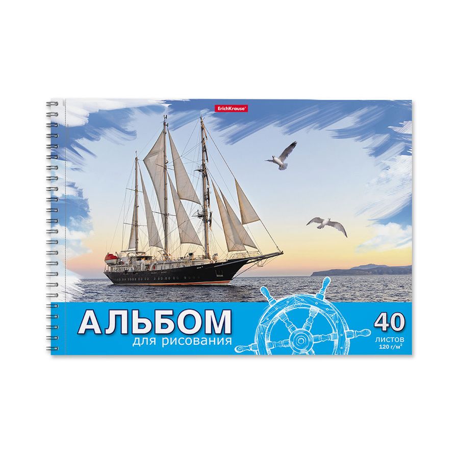 Альбом для рисования формата А4 (210х294 мм). Обложка из высококачественного мелованного картона плотностью 170 г/м2. Жесткая подложка 360 г/м2. В блоке 40 листов. Бумага плотностью 120 г/м2. Белизна бумаги - 100%. Микроперфорация для отрыва. Тип скрепления - спираль. Альбомы упакованы в термоусадочную пленку по 5 штук.