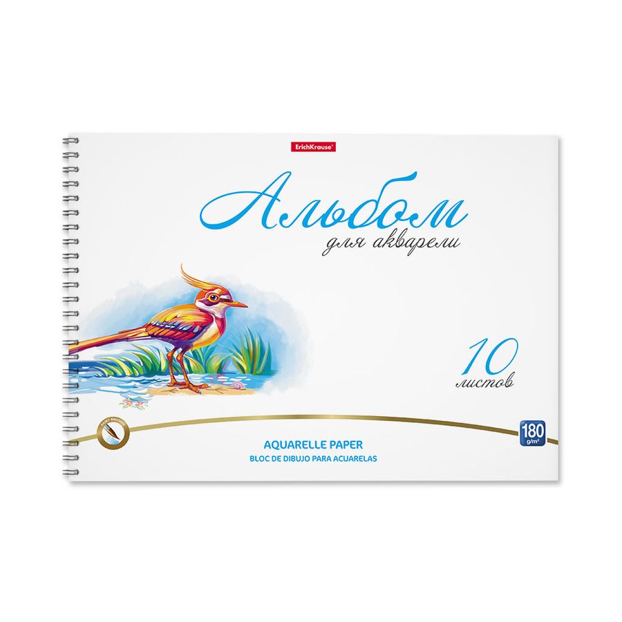 Альбом для рисования формата А4 (210х297 мм). Обложка из высококачественного мелованного картона плотностью 170 г/м2. Жесткая подложка 360 г/м2. В блоке 10 листов бумаги акварельной плотностью 180 г/м2. Специальный рыхлый верхний слой быстро впитывает воду, не позволяя краске растекаться. Белизна бумаги - 100%. Тип скрепления - спираль. Альбомы упакованы в термоусадочную пленку по 10 штук.