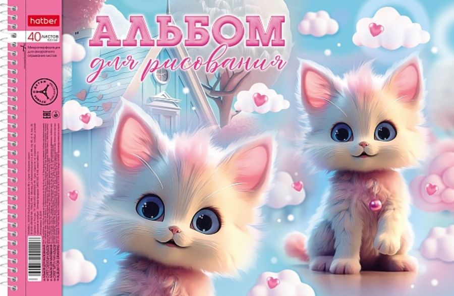 Альбом для рисования А4 40л спираль Котики-зефирки перфорация ассорти 100г/м2 HATBER 40А4мтлВсп (жен)