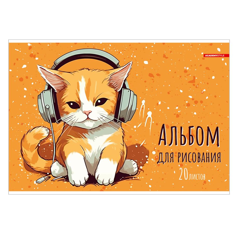 Альбом для рисования А4 20л скрепка Котик в наушниках твин УФ-лак 100г/м2 ACADEMY STYLE 14425 (уни)